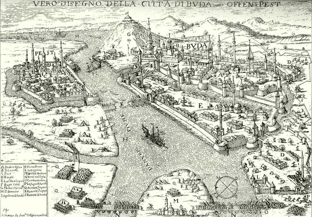Ugyanilyen raktárerőd található a Duna másik oldalán Dunakeszinél, ahol az Erdély felől jövő só-út véget ért. Az lehetett egy rendre Salinasnak nevezett sóraktár-erőd. De ilyen, négytornyú épületábrázolásokat látunk a Buda ostromáról készült néhány olasz metszeten is, Óbudán, a Duna partján. Az olasz szerző a jellegzetes alakjáról felismerte ezeket, és olaszul rá is írta a dogana szót, ami vámházat jelent. Íme, a metszet.